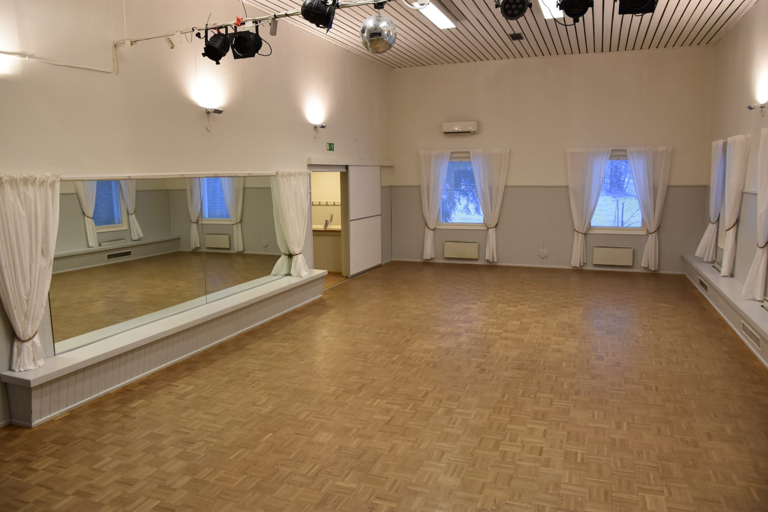 (sali 12,5m x 6,5m ja näyttämö 3,5m x 6,5m)